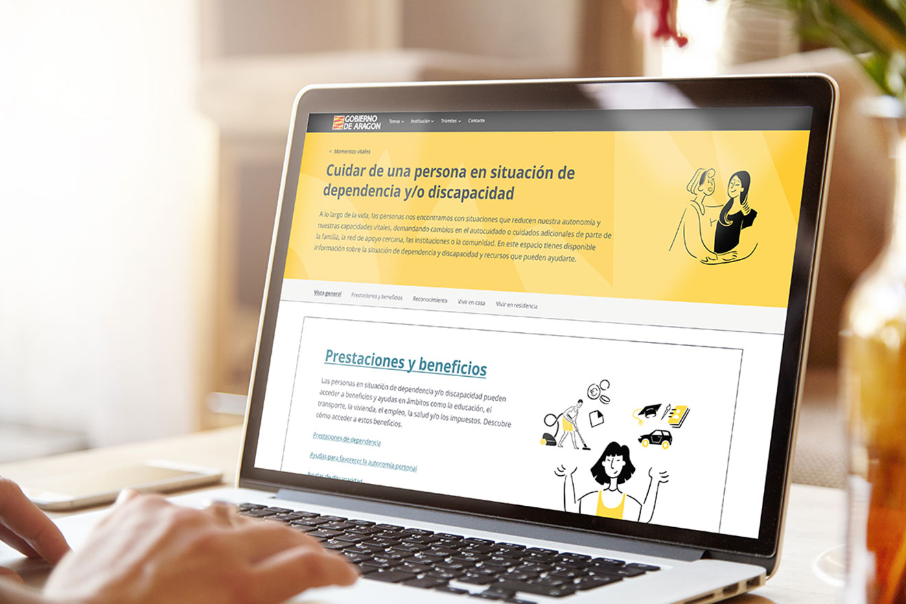 Con el objetivo de brindar orientación a las personas que buscan esas respuestas en los servicios públicos, trabajamos con el equipo de dependencia y discapacidad del Gobierno de Aragón. Transformamos el enfoque del servicio para poner en el centro a las personas cuidadoras, y diseñamos diferentes puntos de contacto que no solo proporcionan información clara y útil a la ciudadanía, sino que también sirven como herramienta de apoyo para profesionales al explicar los procesos y orientar en las decisiones más relevantes