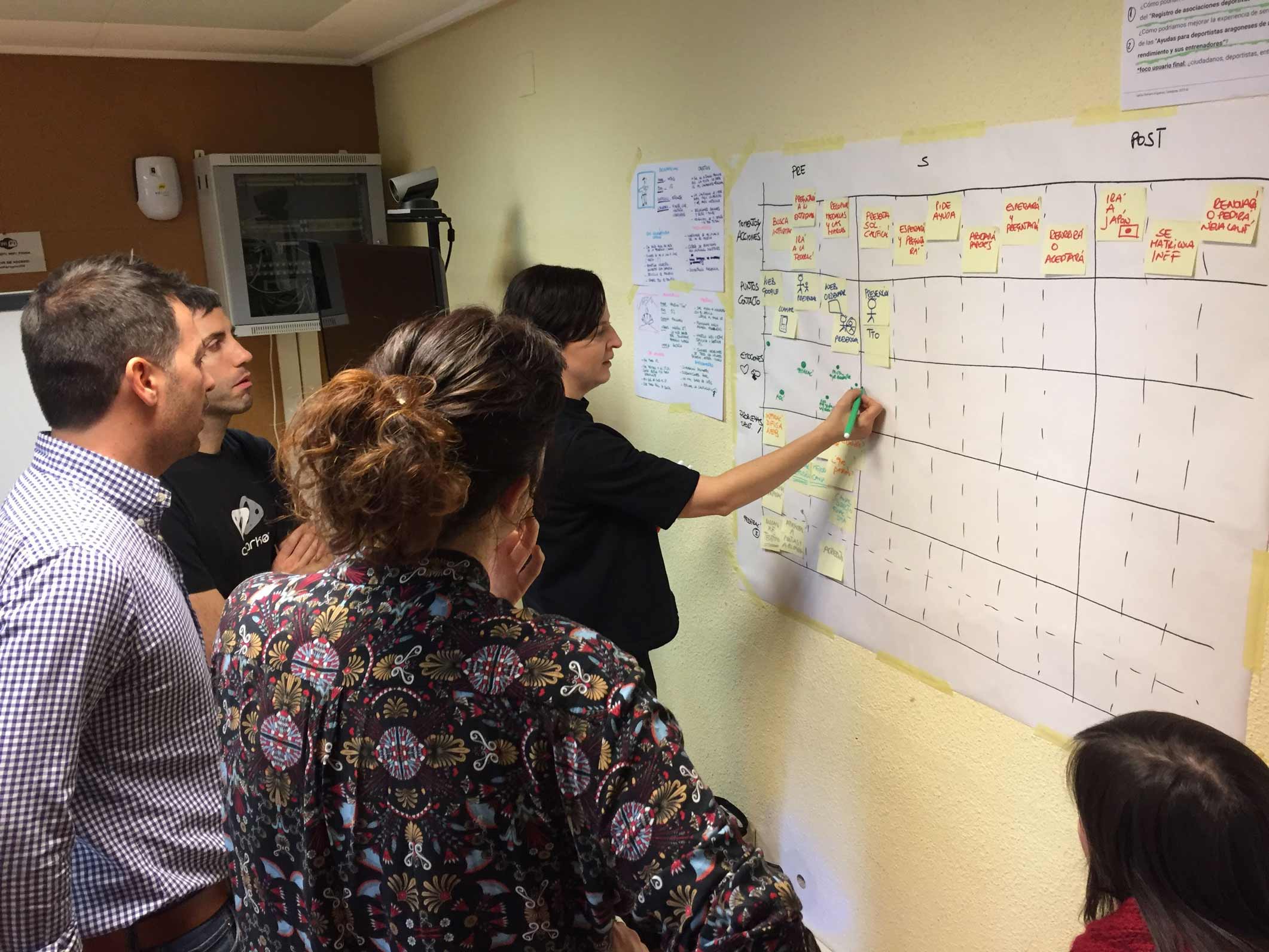 A la experiencia de las GovJam les siguieron las primeras formaciones en Diseño de Servicios para el Gobierno de Aragón y en concreto para SDA, que impartimos desde Fractal. El equipo venía de lugares dispares: la usabilidad, los datos abiertos, el derecho o el desarrollo informático. Estas primeras formaciones fueron una forma de sembrar una idea: que podíamos diseñar servicios poniendo en el centro a las personas.